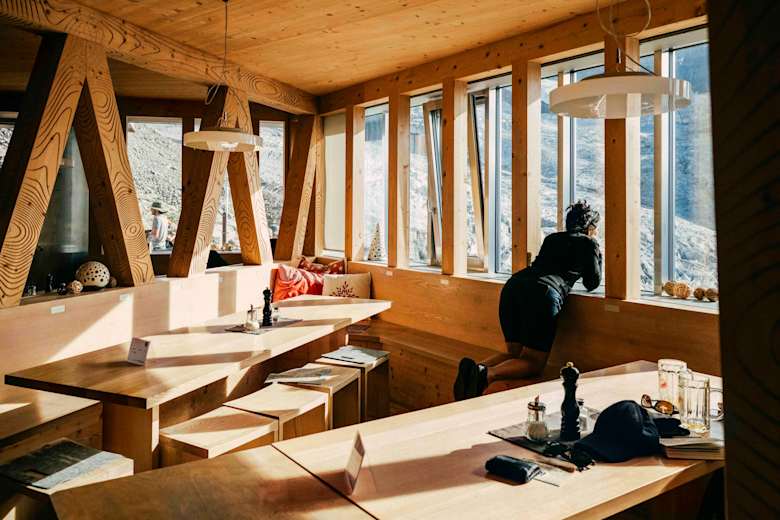 Im Panoramaspeisesaal der Monte-Rosa-HütteFoto: Christian Riefenberg / Red Bull Media House Publishing