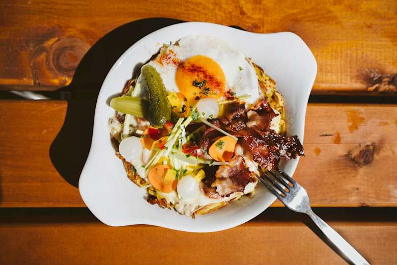 Rösti mit Spiegelei auf der Monte-Rosa-HütteFoto: Christian Riefenberg