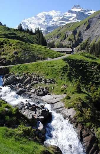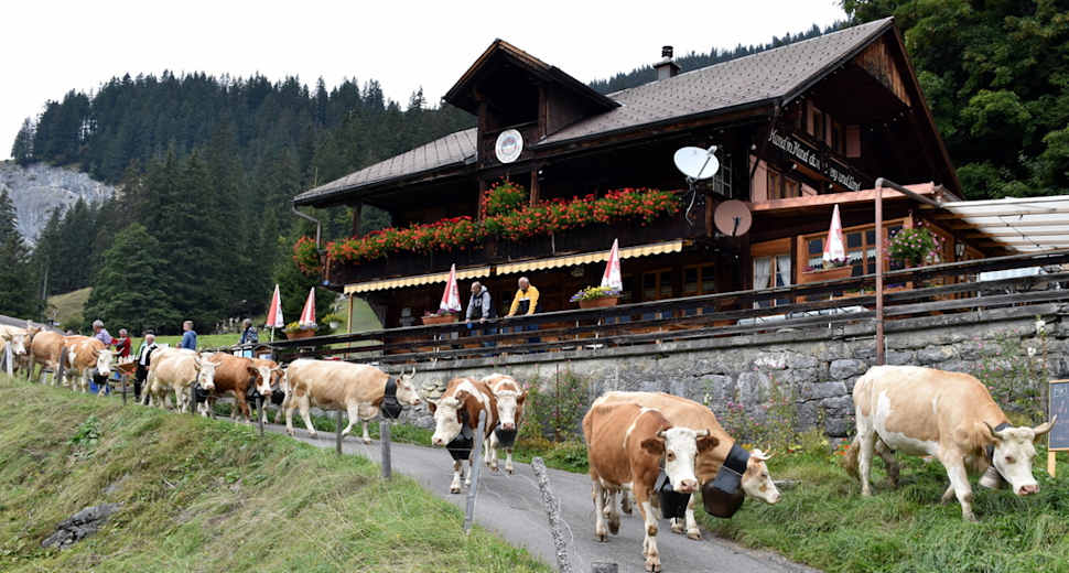 Im dünn besiedelten Kiental entfaltet das Berner Oberland einen rauen Charme. Das Hochtal umfasst grandiose Hochgebirgslandschaften, ausgedehnte Alpweiden und eindrückliche Wasserfälle. Besonders urwüchsig ist die Gegend um die Griesalp. Im Sommer verkehren die Postautos vom Kandertal herauf bis dorthin. Der letzte Abschnitt der schmalen Strasse weist nicht weniger als zwanzig zum Teil sehr enge und unglaublich steile Kurven auf – das Gefälle beträgt bis zu 28%. Die Strasse gilt als steilste Postautostrecke Europas.