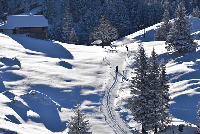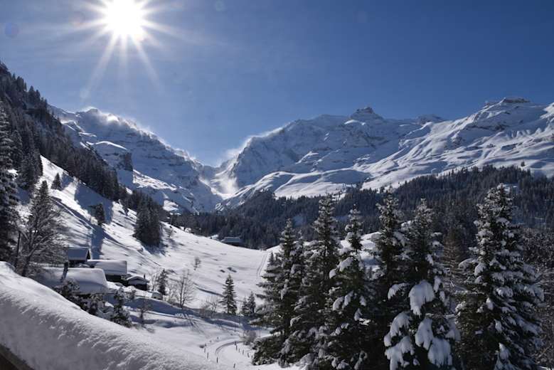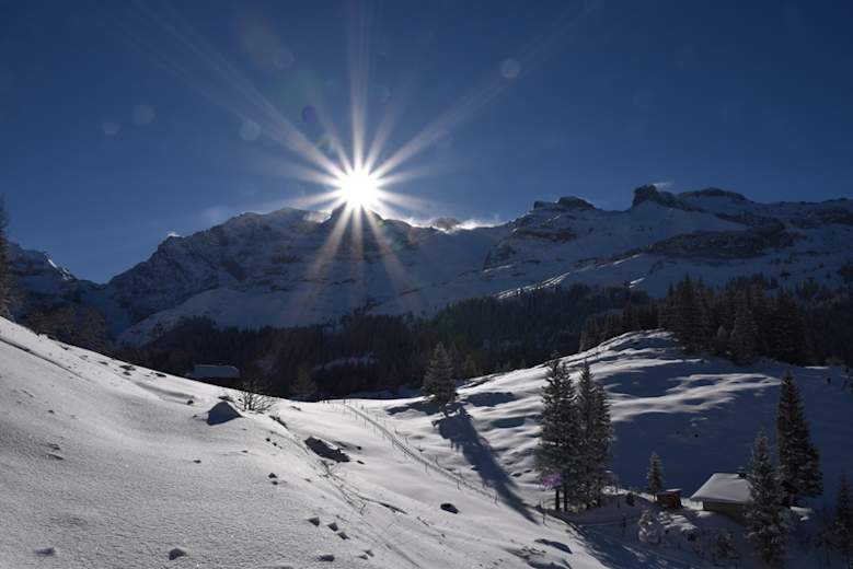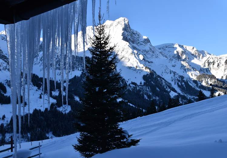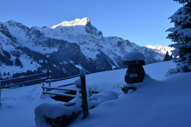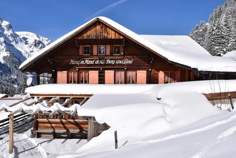 Im Winter ist die Fahrt nur bis Tschingel möglich. Von dort zu Fuß entlang der Strasse in ca. 1 h zur Hütte.