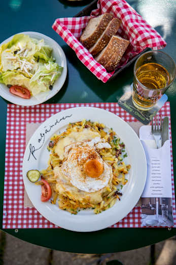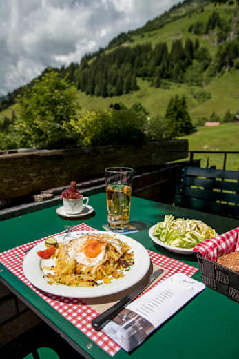 In der Planalp gibt's Rösti mit Spiegelei, die die Wanderer für den Abstieg nach Brienz stärktFoto: David Birri, Bergwelten Magazin Schweiz 05/2017