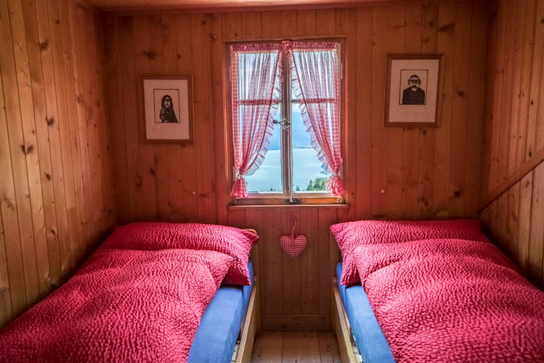 Kleines aber feines Doppelzimmer mit Blick auf den Brienzersee.Foto: David Birri, Bergwelten Magazin Schweiz 05/2017