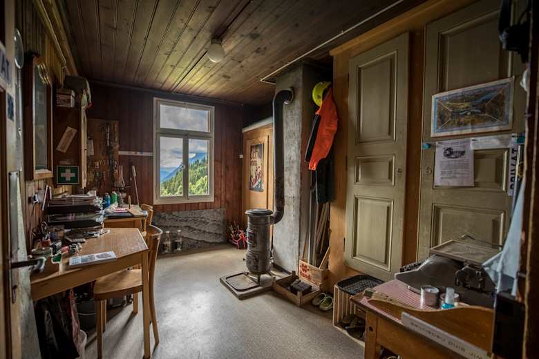 Hier oben gibt es viele Originale, wie auch den kleinen Ofen.Foto: David Birri, Bergwelten Magazin Schweiz 05/2017