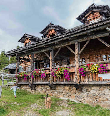 Von hier aus blickt man weit hinein in die Hohen Tauern und die Nockberge bis zum Millstätter See. Aber auch in der gemütlichen Stube gibt es Speckknödel mit Kraut, Schweinsbraten und täglich frische Suppen. Das Bier fließt dazu aus dem Fass. Im ersten Stock befindet sich ein gemütliches Bettenlager, ebenfalls mit tollem Ausblick.