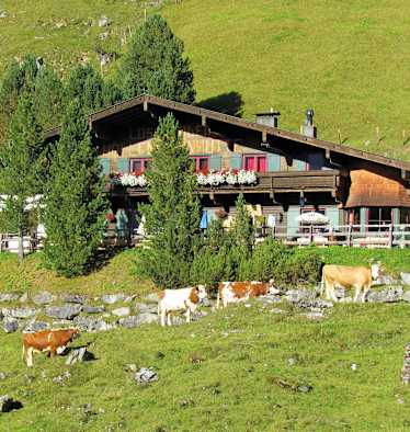 Die zu den Tuxer Alpen gehörige Hütte bildet eine Station der beliebten Naviser Almenrunde und lädt Wanderer und Biker zur gemütlichen Einkehr.