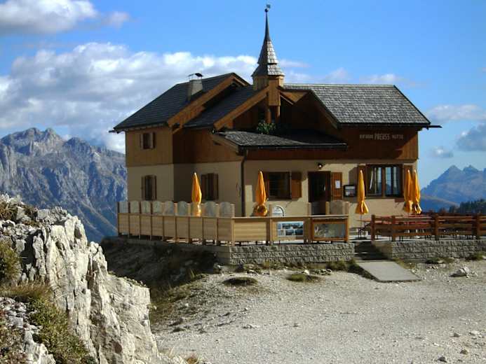 Am Fuße der imposanten Felswände und der Vajolettürme liegt auf einer flachen Felsstufe die Paul-Preuss-Hütte. Die kleine Hütte liegt auf 2.243 m und ist ein beliebter Stützpunkt für Tagesausflügler, wie für Bergwanderer oder Kletterer. Die Hütte kann man von der Bergstation der Seilbahn auch bequem mit dem Mountainbike erreichen. Bei der Hütte verzweigen sich gleich mehrere Steige und Wege zu den schönsten Übergängen und Gipfelzielen in der Rosengartengruppe in Südtirol.