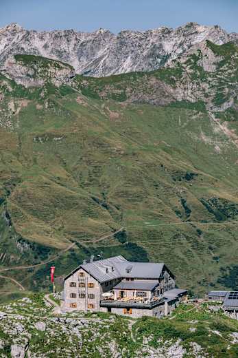 Namensgeber des Prinz-Luitpold-Hauses ist der Bayerische Prinzregent Luitpold, auf dessen Grund das Haus 1880 gebaut wurde. Damit ist es die älteste DAV-Schutzhütte in den Allgäuer Alpen. An Spitzentagen übernachten 280 Personen im Haus auf 1.846 m, da kann es ganz schön turbulent zugehen. Das Hüttenteam hat aber Erfahrung und bemüht sich, die Wartezeiten beim Essen kurz zu halten. Das gelingt meist. In freundschaftlicher, gemütlicher Atmosphäre werden Speisen aus der gut bürgerlichen Küche serviert, die frisch aus der Region stammen - von der Suppe über den Gamsbraten bis zu Kuchen und Käseplatte. 1994 erfolgte der letzte große Umbau. Vom Modernisierungsschub (sanitäre Anlagen etc.) profitieren die Gäste heute noch. Der Trockenraum ist riesig.