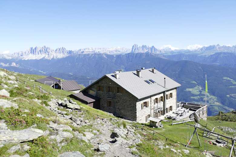 Die nächstgelegene Hütte ist die Brugger Schupfe in 2.000 m, die in 40 min Gehzeit zu erreichen ist. Weiters: Klausner Hütte (1.923 m, 2 h); Schutzhaus Latzfonser Haus (2.311 m, 3:30 h); Flaggerschartenhütte (2.481 m, 6 h).