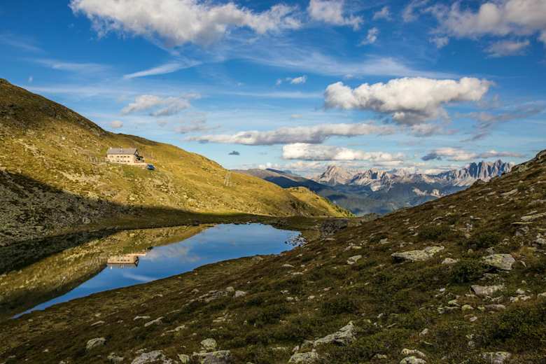 Nur wenige Meter über dem Radlsee gelegen, befindet sich die gleichnamige Radlseehütte (2.284 m) zwischen Hundskopf (2.352 m) und Königsangerspitze (2.436 m) in den Südtiroler Sarntaler Alpen.