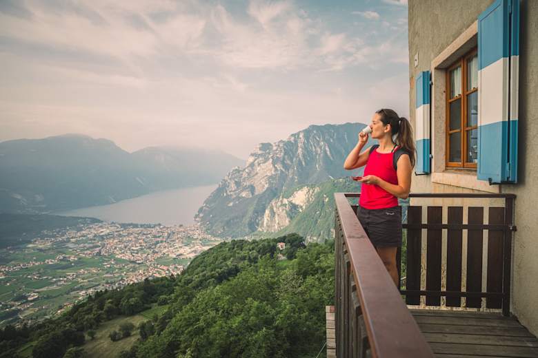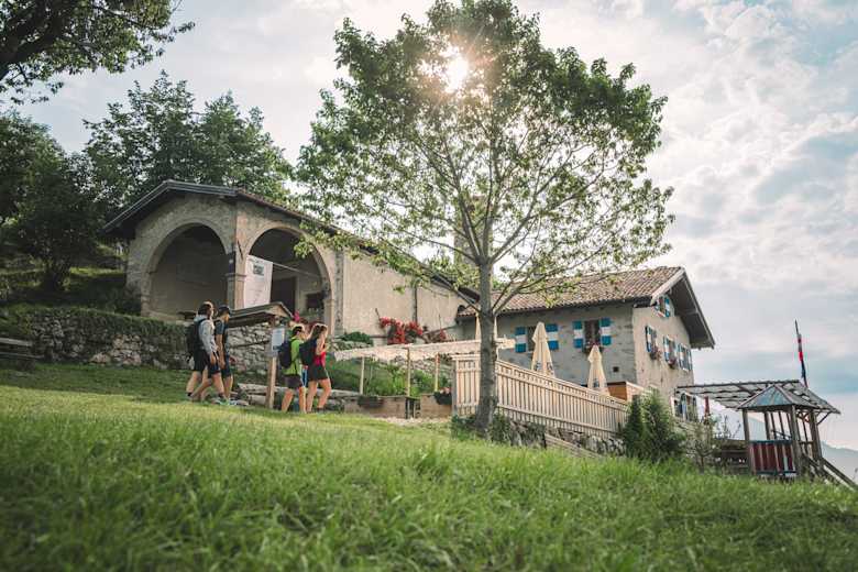 Von der Siedlung Bastiani erreicht man in etwa 10 Minuten die schön gelegene Schutzhütte, die auf einer natürlichen Terrasse liegt und ein spektakuläres Panorama auf den nördlichen Gardasee bietet.