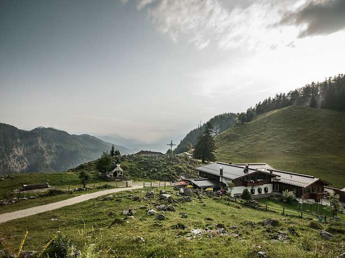 Für Kinder ist im weitläufigen Gelände um die Alm genug Platz zum Spielen, ein Ausflug zum munter vor sich hin plätschernden Kaiserbach bietet Abkühlung und Gelegenheit für kreative Wasserbauten.
