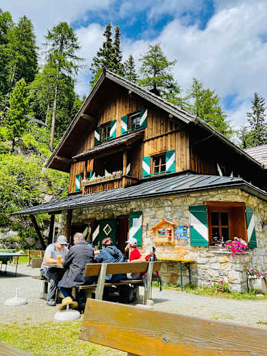 Auf der Sonnenterrasse dieser extrem urigen, zwischen 1992 und 1994 wieder und neu erbauten Hütte serviert Wirtin Monika Winkler Hausmannskosten und Spezialitäten aus dem Lungau. Wirtin mit Herz, nennt man Monika in Muhr. Hütte, See, Hinterer Schober, Salzkopf und die Stille rundum, bilden eine Idylle, die man genießen soll. Denn hier ist der Alltag weit weg. Während Erwachsene hier Rast und Ruhe finden, ist für Kinder der Hütten-Spielplatz der Ort um sich auszuleben.