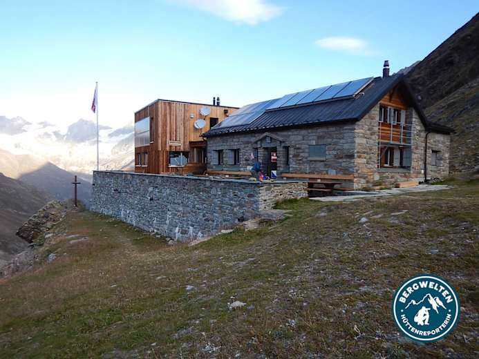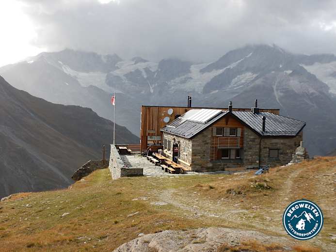 Die Hütte war 1945 eine der letzten Schutzhütten die gebaut wurden. 2007/08 wurde sie modernisiert, so dass sie heute ein sehr freundliches und gemütliches Ambiente hat. Eine kleine Oase unterhalb der Viertausender mit tollem Blick auf Weißhorn und Zinalrothorn.