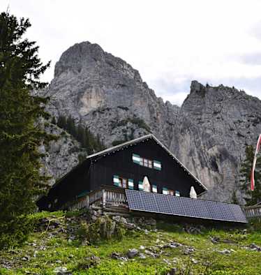 Die nächstgelegene Hütte ist das Gimpelhaus (1.659 m), das man in nur 15 min erreicht.
