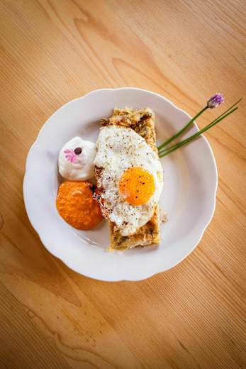 Es wird täglich frisch gekocht und es gibt immer mindestens ein vegetarisches Gericht wie den Gemüsestrudel.Foto: Marco Rossi, Bergwelten Magazin 03/2015