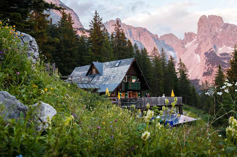 Auch alpine Kletterer sind häufig Gäste in der gemütlichen Hütte, die schöne Ausblicke – im Besonderen auf die mächtige Bischofsmütze – garantiert. Ein wundervoll angelegter, angrenzender Alpengarten lädt zum Verweilen ein. Im Winter lassen sich in der Gegend viele schwierige Skitouren gehen – die Hütte hat aber nur bis Mitte Oktober geöffnet.