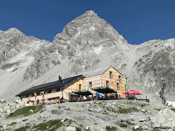Der Weg auf die Hütte ist auch für kleine, junge und ältere Bergfreunde problemlos zu bewältigen. Sie liefert als Belohnung für den Aufstieg eine grandiose Fernsicht auf die einzigartigen Schneeberge der Silvretta-, Verwall- und Berninagruppe.