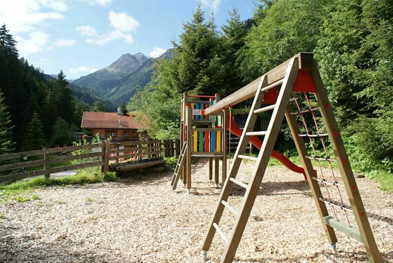 In der Stube mit Kachelofen sitzt es sich ausgesprochen gemütlich, vor dem Haus gibt es eine große Terrasse, einen Garten, einen Kinderspielplatz und einen Barfußweg. Kleine Abenteurer können eine im Wald versteckte Schatzkiste suchen.