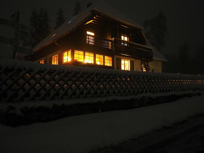 Wanderheim Kreuzmoos im nächtlichen WinterFoto: Lothar Dold