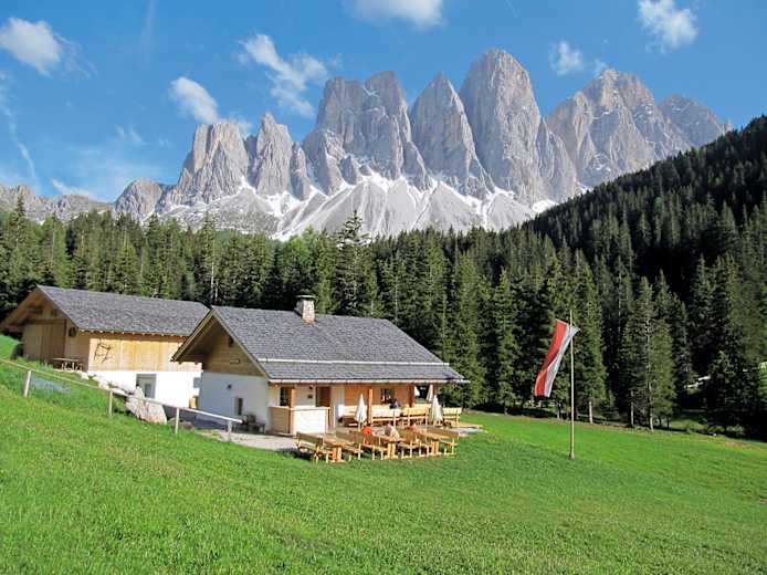 Die neu erbaute Almhütte ist eine optimale Einkehr für die ganze Familie, vor oder nach einer erlebnisreichen Wanderung im Naturpark Puez-Geisler. Familie Messner verwöhnt die Gäste mit typisch Südtiroler Gerichten und Produkten aus hauseigener Herstellung. Direkt am barrierefreien Naturerlebnispfad Zans gelegen