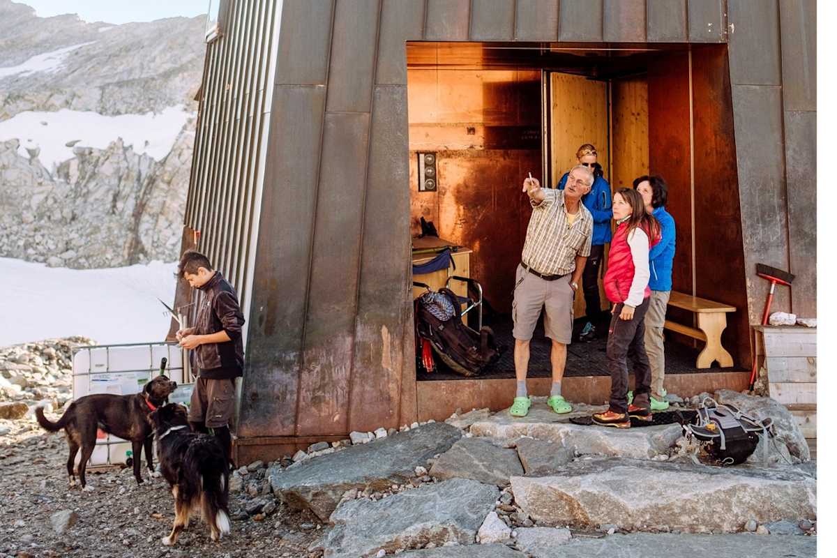 Je näher man der Hütte kommt, desto augenfälliger wirkt das Gebäude: ein unregelmäßiges Sechseck; ein turmartiges Bollwerk, das von allen Seiten anders aussieht; ein Zufluchtsort in einer Umgebung aus Gletscher und Granit. Jeder im Tal kennt das Refugium, zumindest haben alle eine Meinung über seine außergewöhnliche Architektur – manche, ohne oben gewesen zu sein, ohne die Hütte aus der Nähe betrachtet zu haben. Der Neubau einer alpinen Schutzhütte, vor allem wenn sie einen innovativen Baustil aufweist wie die neue Schwarzensteinhütte, bietet mitunter Stoff für monatelange Diskussionen.