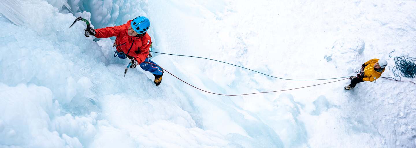 Klettern an gefrorenen Wasserfällen ist kein alltägliches Outdoor-Abenteuer – wer sich daran wagen möchte, benötigt ein ganz spezielles Equipment.