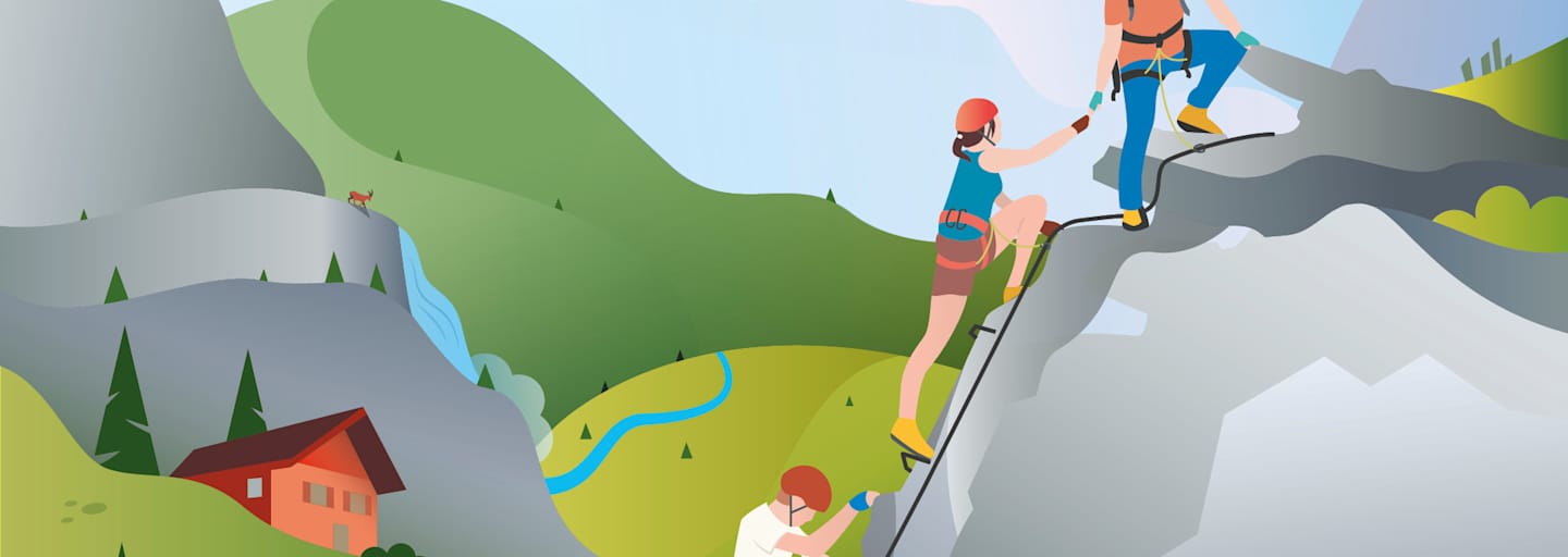 Lerne ein Wochenende lang, alle theoretischen und praktischen Grundlagen zum Thema Klettersteig