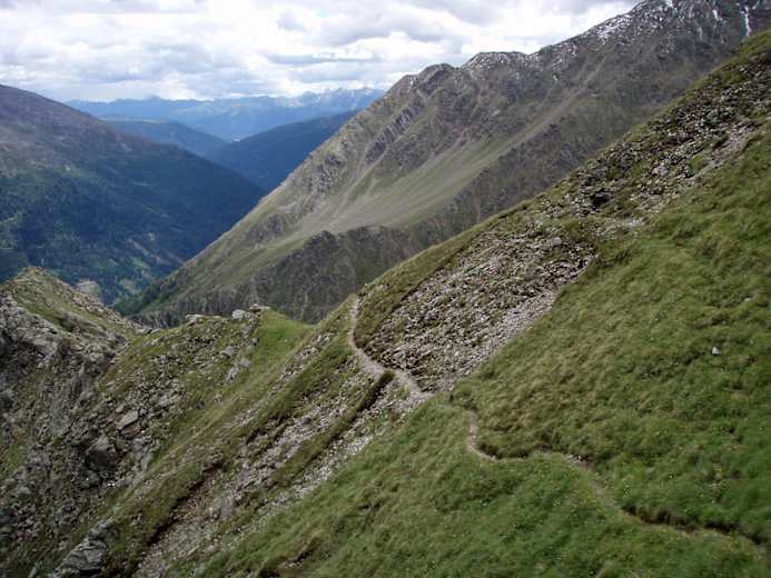Der weitere Weg führt in jedem Fall über den problemlos begehbaren und harmonischen Bonner-Höhenweg. Er führt über weite Strecken durch einsame Bergregionen auf dem Grenzkamm zwischen Österreich und Italien und kreuzt mehrfach eine europäische Wasserscheide zwischen Schwarzem Meer (Osttiroler Seite) und Mittelmeer (Südtirol Seite). Über das Heimwald- und Kalksteinerjoch (möglicher Abstieg nach Kalkstein am ersten Tag) führt der Pfad zur Grubers Lenke und weiter auf das Pfanntörl (2.508 m). Von hier kann man direkt zur bestens geführten Bonner Hütte gelangen die auch Übernachtungsmöglichkeiten bietet.