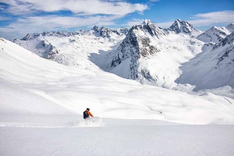 Die Bergstation Pischa im Skigebiet Davos-Klosters gilt als idealer Ausgangspunkt für tolle Freeride-Touren mit sensationell langen Abfahrten. Eine Möglichkeit führt vom Pischahorn bis hinunter ins Vereinatal und anschließend weiter nach Monbiel.