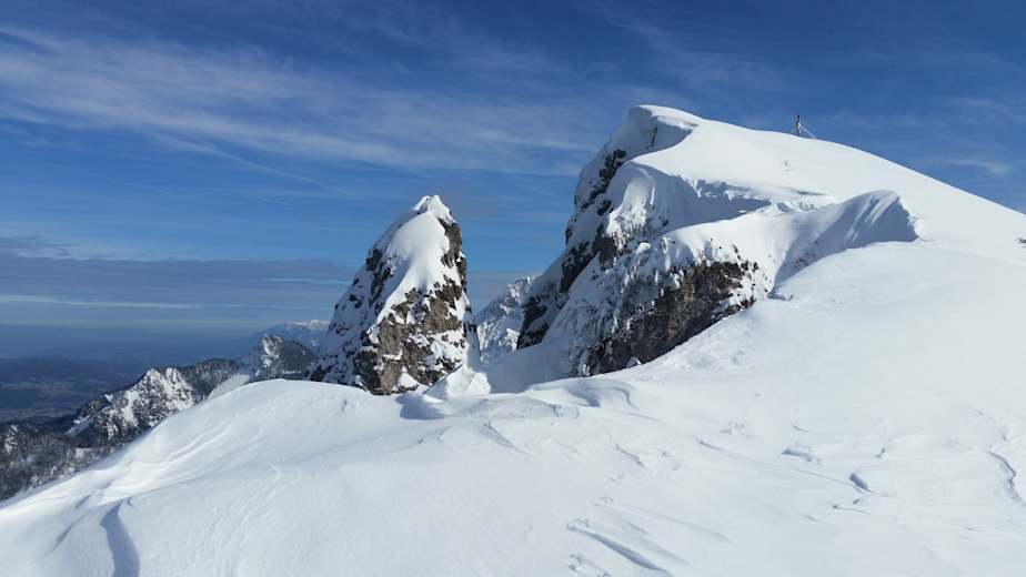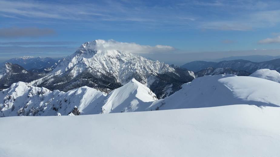 Von diesem geht es über den herrlichen Westhang bis zum baumfreien Gipfel des Schwarzkogels. Die Abfahrt erfolgt Richtung Südwesten in den Graben zwischen Schwarzkogel und Murnovec bevor der letzte Gipfelanstieg auf den Murnovec in Angriff genommen wird.