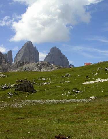 Die Umrundung der Drei Zinnen, dem weltberühmten Wahrzeichen der Dolomiten, von der Auronzohütte (2.320 m) über den Paternsattel (2.454 m) zum Rienzursprung, direkt zur Langalm (2.235 m) und zurück zur Auronzohütte. Das ist der Wanderklassiker im Naturpark Drei Zinnen im UNESCO-Welterbe Dolomiten.