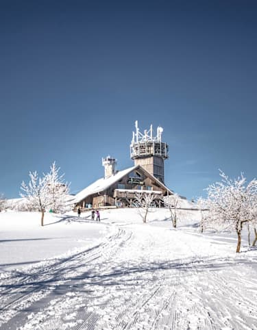 Der 887 m hohe Himmeldunkberg in der Rhön ist vulkanischen Ursprungs und im Winter eine gute Option für eine Schneeschuhwanderung, auch für Anfänger.